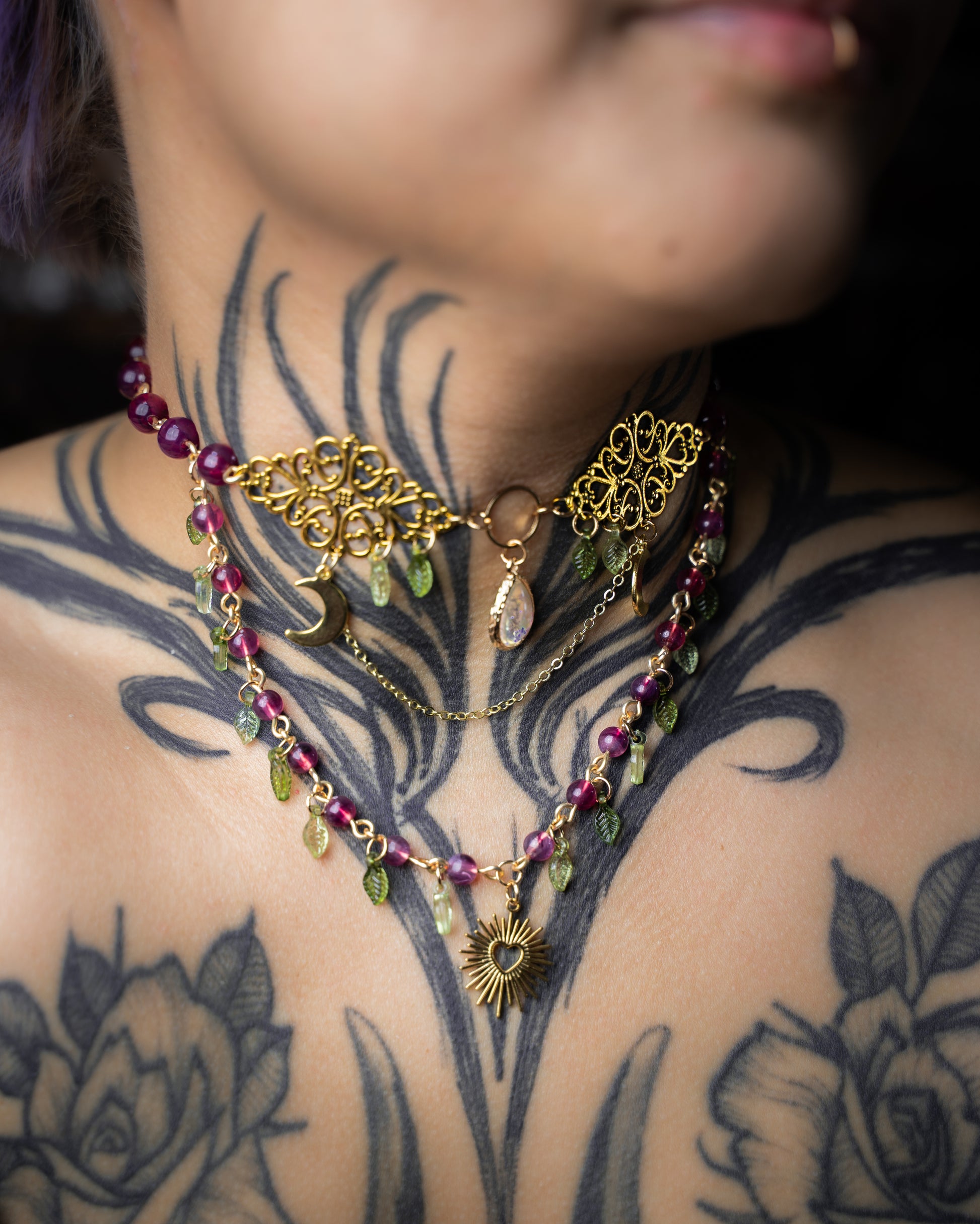 "Vermeide es, die Halskette beim Duschen, Schwimmen oder in feuchter Umgebung zu tragen, da Feuchtigkeit die Materialien beschädigen oder zu Hautirritationen führen kann."